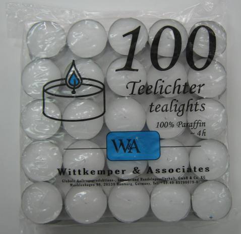 100 kosov čajnih svečk pakiranih v folijo.